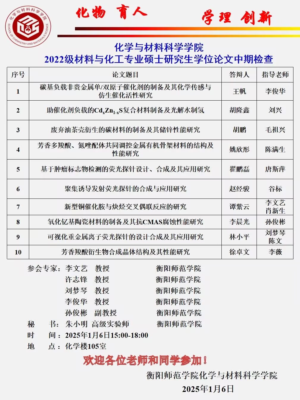 化材学院2022级材料与化工专业硕士研究生学位论文中期检查