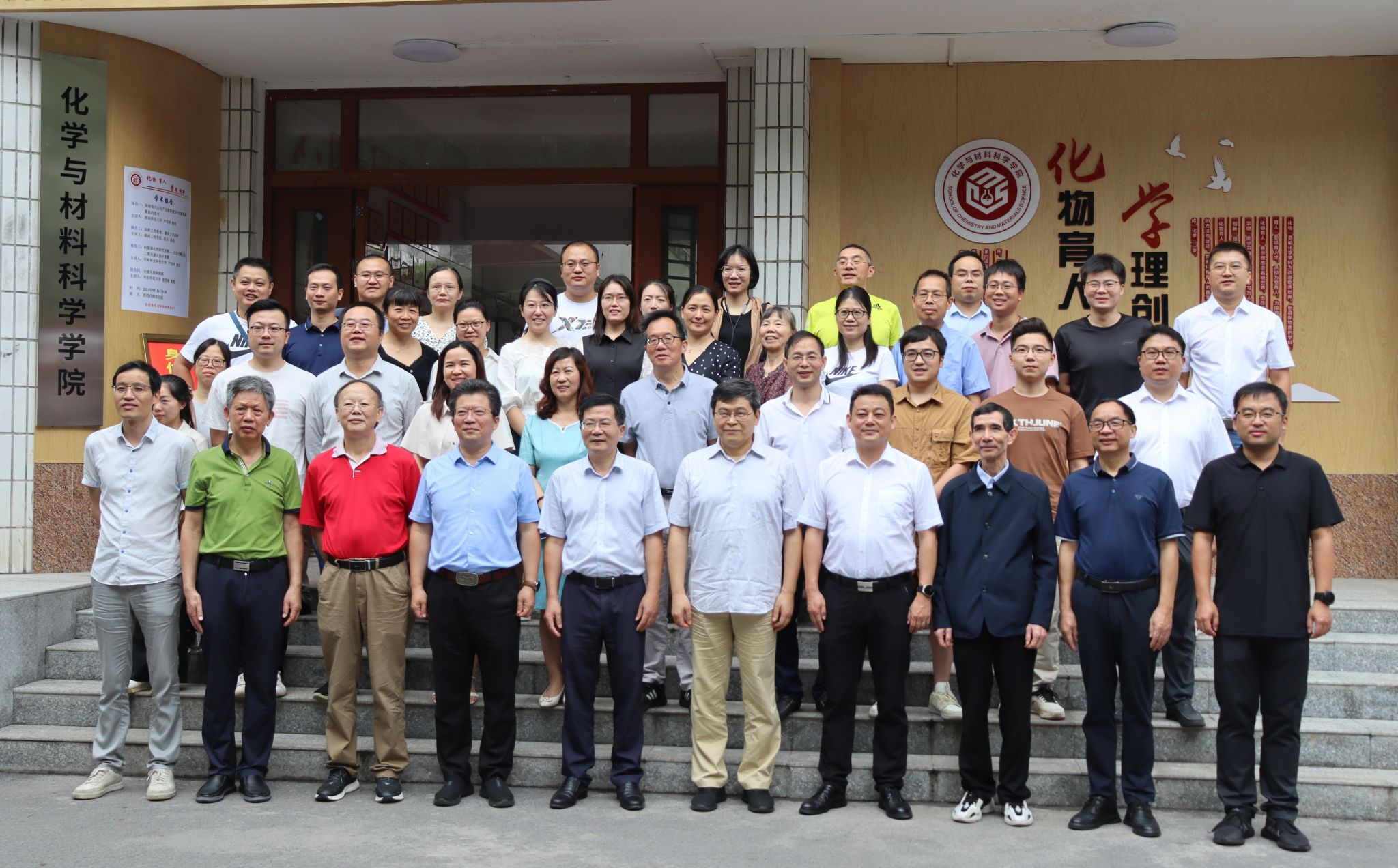 第一阶段,欢迎仪式。欢迎仪式由科技处处长邓运员教授主持。邓运员教授首先介绍了出席本次会议的专家和领导,随后,副校长魏晓林教授致欢迎词,代表学校对各位专家百忙之中抽出时间来参加本次会议表示欢迎,他向各位专家介绍了我校的发展历程,感谢各位专家一直以来对学校、学院发展的关心与支持,希望在各位专家的关心和指导下,在学科和平台建设上取得更大进步。欢迎仪式结束后,全体与会成员在化学楼门口合影留念。