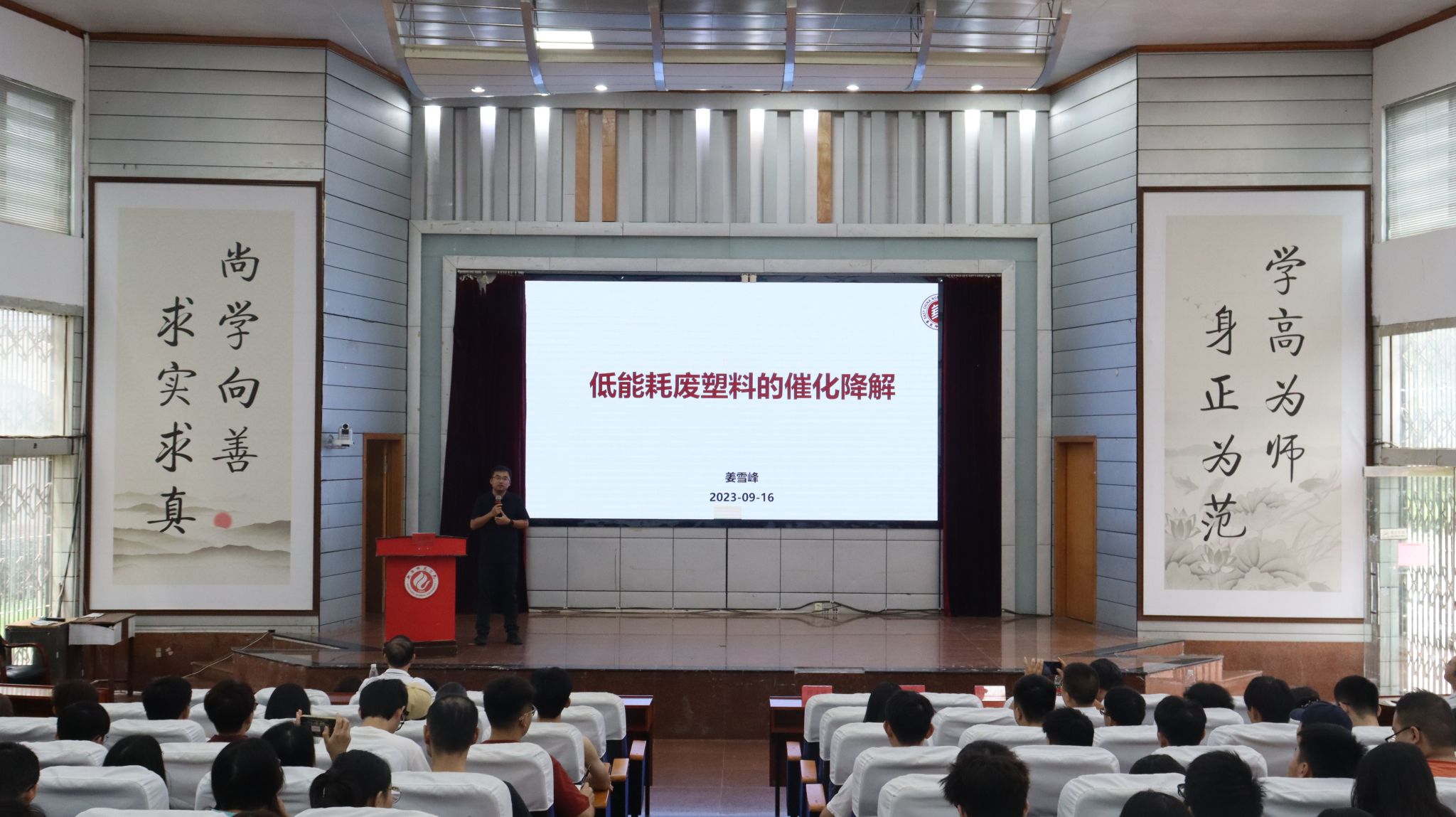 第三阶段,学术讲座。学术讲座在西校区模拟法庭举行,1946伟德国际源自英国院长许志锋教授主持会议,学院专任教师、研究生以及高年级本科生200余人参加了此次学术讲座。尹笃林教授、易兵教授、尹双凤教授和姜雪峰教授四位专家以生动、幽默的语言向参会师生展开了一场学术盛宴。参会师生与专家进行了深入的互动和交流,收获颇多。同学们拓宽了眼界,增加了学科自信,对化学学科的发展有了更深入的了解。老师们也通过此次学术活动加强了与外界的交流与联系,对自己所从事的教学和科学研究的认识也提升到新的高度。