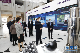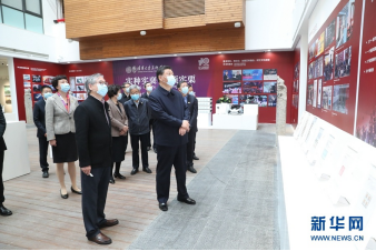 清华大学主楼二层,展示了学校近年来重点教学科研成果。习近平听取了关于增强自主创新能力、助力世界主要科学中心和创新高地建设、提高人文社会学科教育研究水平等情况介绍,对清华大学取得的成绩给予充分肯定。习近平指出,要坚持中国特色社会主义教育发展道路,充分发挥科研优势,增强学科设置的针对性,加强基础研究,加大自主创新力度,并从我国改革发展实践中提出新观点、构建新理论,努力构建中国特色、中国风格、中国气派的学科体系、学术体系、话语体系。
