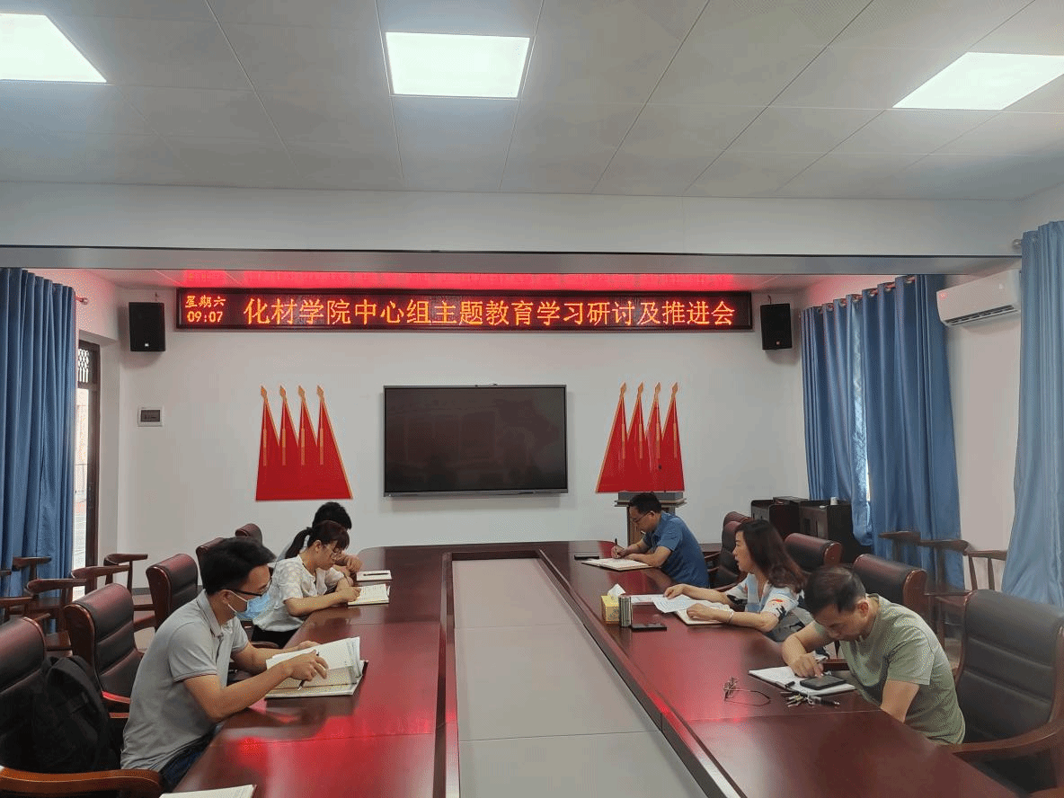 7月8日,化材学院党总支书记刘梦琴主持召开中心组主题教育学习研讨及推进会,通报前一阶段我院开展情况的成绩和差距,研究部署下阶段主要工作任务。院长许志锋,中心组成员和三个支部书记等出席会议。