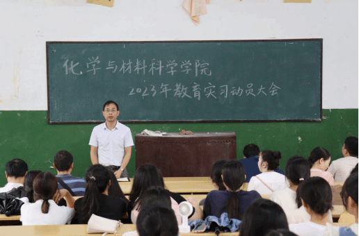为了保证我院2024届化学(师范)毕业生对教育实习重要性有着充分认识,以更加积极的态度融入教育实习工作,我院特于2023年9月27日下午在成教楼一楼阶梯教室举办教育实习动员大会,此次会议由副院长付伟伟主持,院长许志锋担任主讲。参加本次会议的还有进驻各实习点的指导教师及学院教学秘书等人。