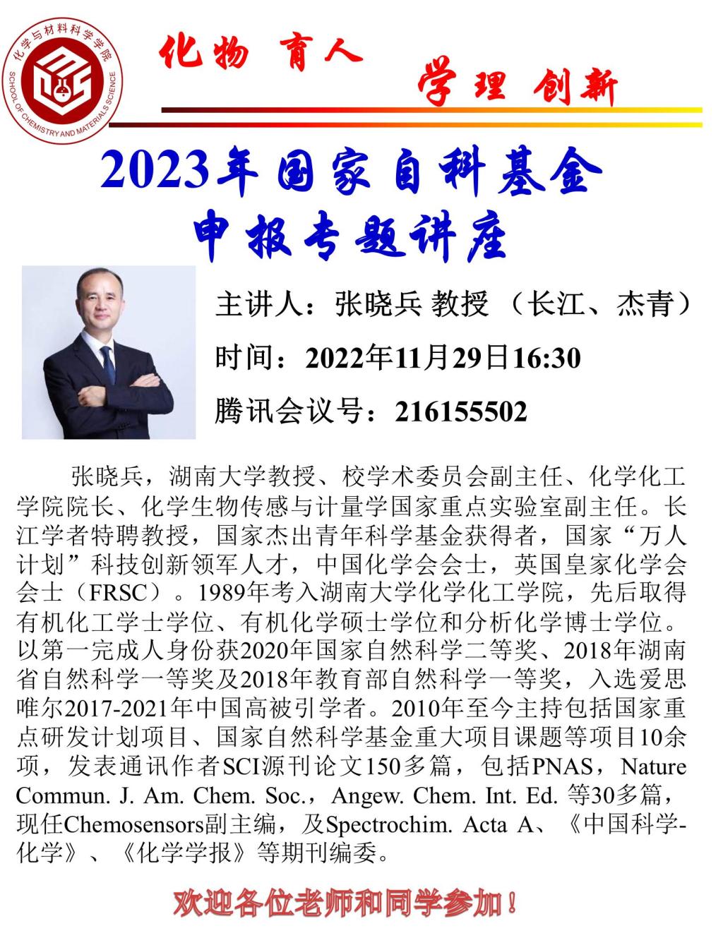【基金申报】2023年国家自科基金申报专题讲座张晓兵教授报告会通知