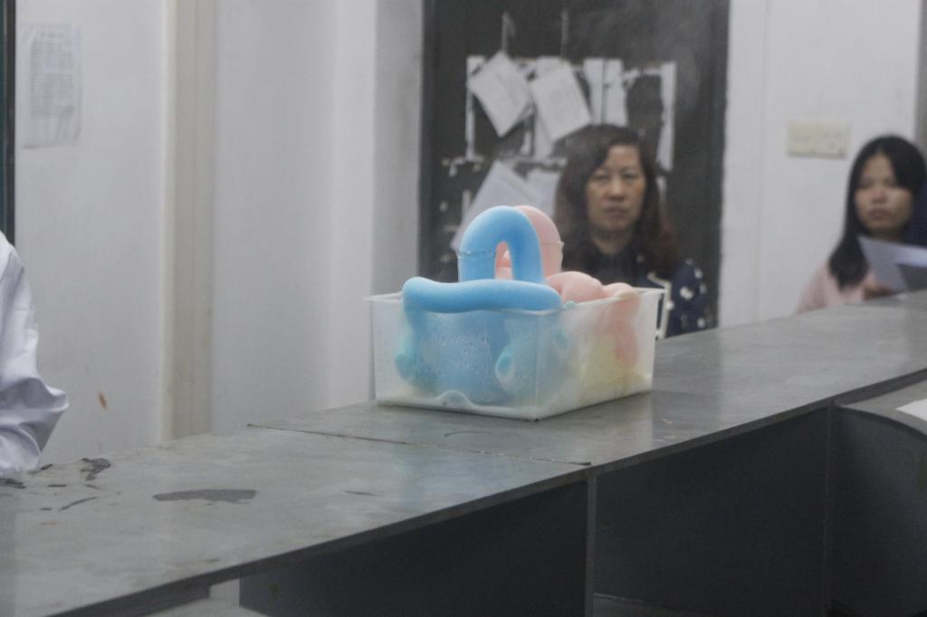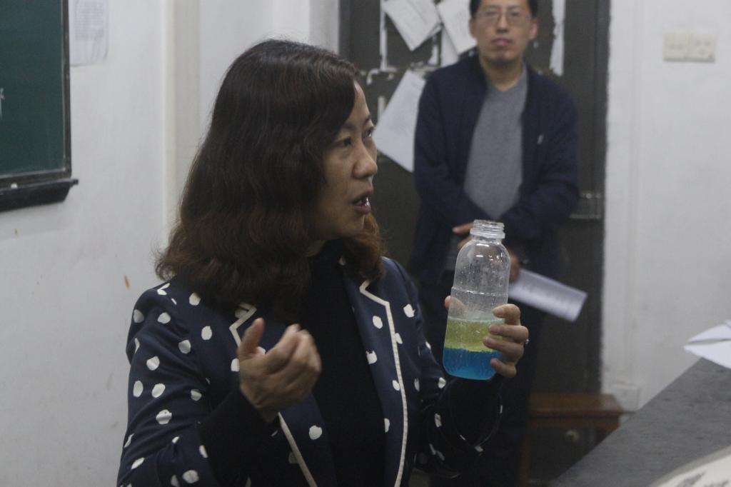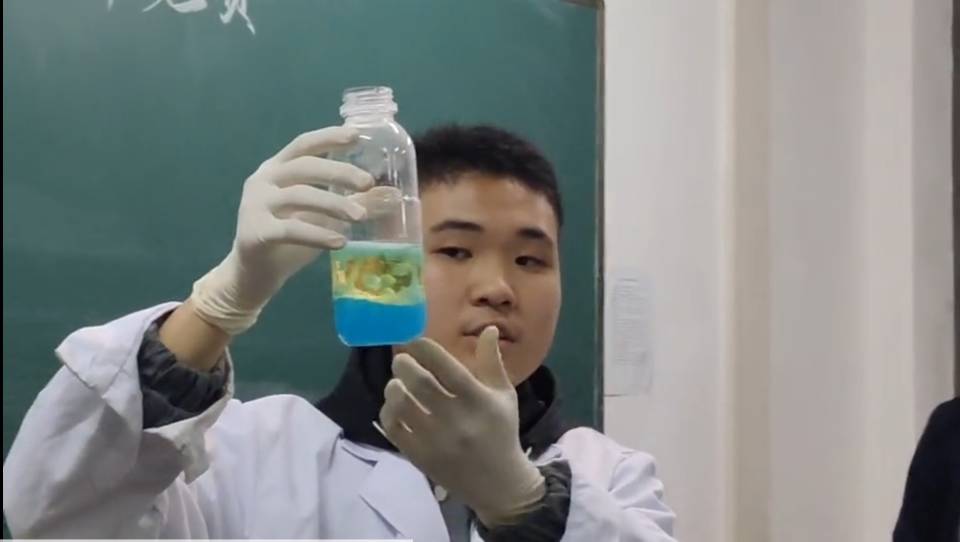 通过初赛和复赛激烈的角逐,我院共有八组选手脱颖而出进入决赛。其中陈杰同学的实验——“海底火山”令人眼前一亮,他将注入了蓝色颜料的水倒入油中,水和油发生分离,然后加入名为“阿片”的药品,水与“阿片”反应在容器中生成大量气体,造成一种类似于海底火山喷发的现象,这个新奇的设计让评委称赞不绝。此外,第一组同学带来的实验——“大象牙膏”也令人拍手叫好,他们从日常生活中随处可见的原料和化学现象入手,在向同学们传递化学知识的同时,也给大家带来了一场新奇的视觉体验。上届一等奖获奖选手钟荷花同学赞叹道:“这一组的实验取材很好的联系了生活实际,值得大家学习!”
