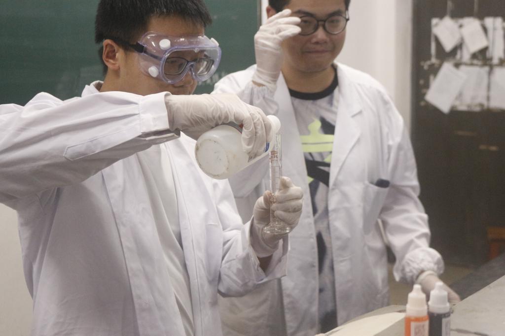 为了培养大学生的专业动手能力和创新能力,2022年5月15日晚,我院于综实楼420开展了化学趣味实验竞赛,院党总支书记刘梦琴老师、刘洋老师以及往届优秀获奖选手担任此次大赛评委。