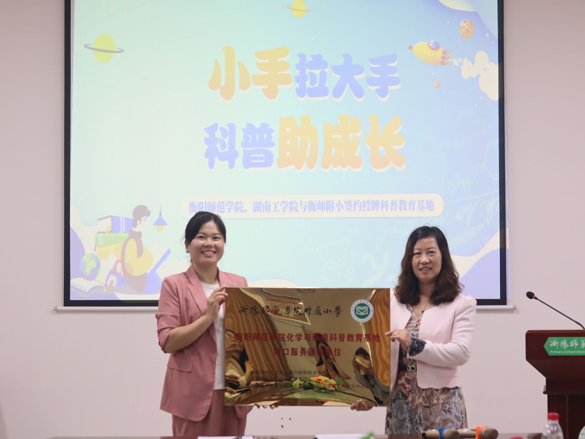 11月4日,1946伟德国际源自英国与伟德BV1946附属小学举行“化学与环境科普教育基地”签约授牌仪式。1946伟德国际源自英国党总支书记刘梦琴、副书记阳曼、副院长付伟伟以及衡师附小党总支书记、校长邹利民、副校长韩艳玲、罗灿、彭伟家等全体中层干部出席挂牌仪式。活动由附小副校长韩艳玲主持。