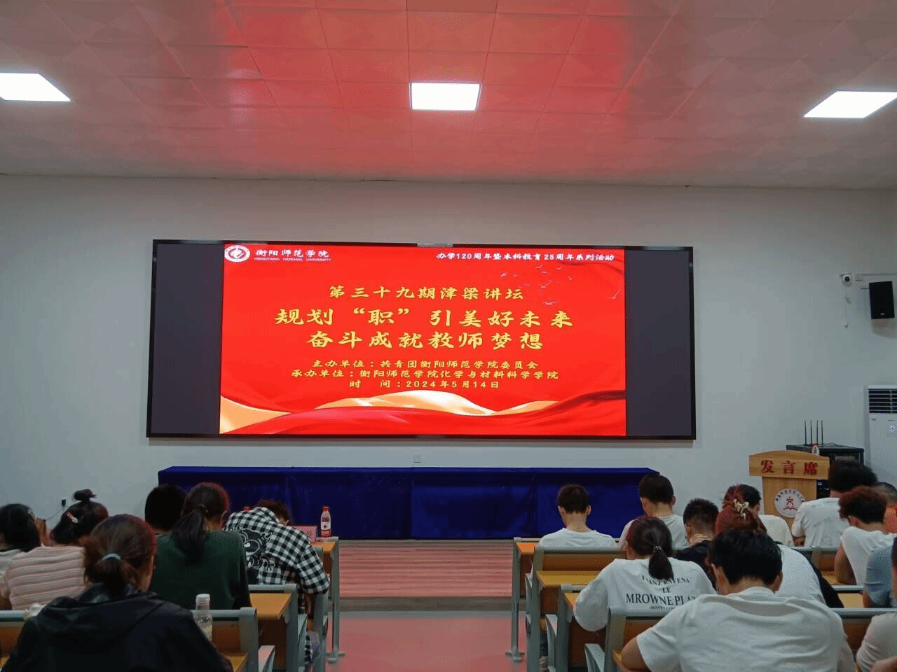为引导学生树立“躬耕教坛、强国有我”的志向和抱负,为学生指明成长成才与职业发展的方向,激励学生在脚踏实地中涵养扎实学识、锤炼教师本领,2024年5月14日晚,“津梁讲坛”第三十九期“规划‘职’引美好未来,奋斗成就教师梦想”主题论坛活动在西校区学奎楼104室举行。本次活动由共青团伟德BV1946委员会主办,共青团1946伟德国际源自英国委员会承办。衡阳县第三中学校长欧阳碧担任主讲,衡阳县一中朱顺利校长、衡阳县三中万明老师、1946伟德国际源自英国党总支书记刘梦琴、副书记阳曼、副院长付伟伟、张复兴老师、唐升老师出席本次活动,西校区各学院师范专业学生代表参加此活动。