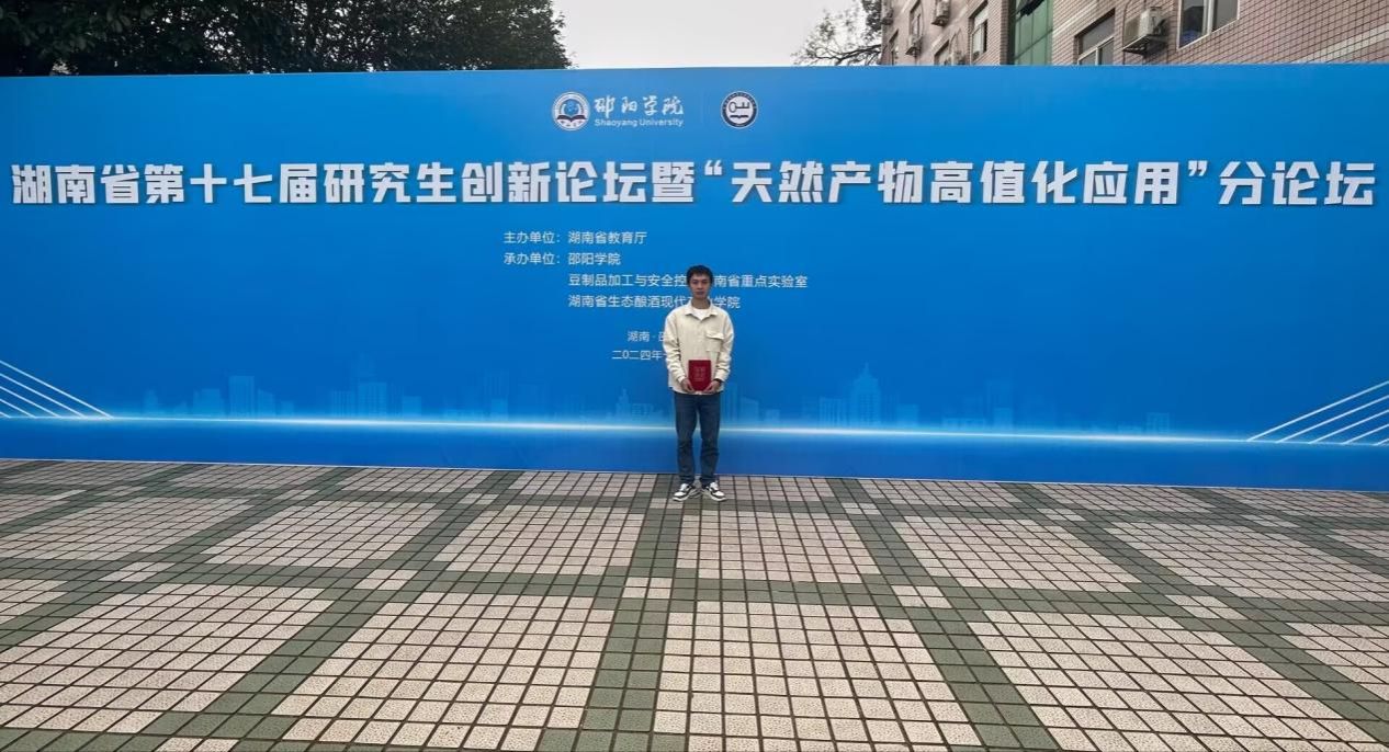 2024年11月15日,湖南省第十七届研究生创新论坛暨“天然产物高值化应用”分论坛在邵阳学院成功举办。本次论坛由湖南省教育厅主办,邵阳学院食品与化学工程学院承办,吸引了来自全省多所高校的优秀研究生踊跃参与。我院2022级研究生林小平及其团队凭借题为《高灵敏草甘膦AIE荧光探针的构建及应用》的学术报告,从众多参赛作品中脱颖而出,荣获一等奖!
