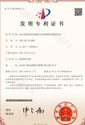 4)湖南省自然科学基金项目:基于导电聚合物光敏化的复合催化剂制备、分解水制氢及机理研究,项目编号:2019JJ500122019-2021.