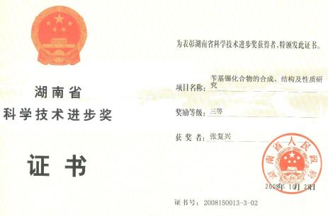 金属有机化学科研团队共由5人组成,带头人张复兴,二级教授,湖南省高校青年骨干教师,湖南省优秀教师,湖南省重点实验室主任、湖南省高校重点实验室主任、湖南省高校科技创新团队负责人,硕士生导师。团队主要研究内容为金属有机化合物的合成、结构及其性能研究。围绕金属资源的精深利用,理性设计含氮(氧)多齿配体,合成具有特殊的光电性能、抗肿瘤活性、催化性能的功能金属有机化合物,开展结构与性能的关系研究,为其在药物、材料等领域的应用提供理论基础和技术支持。近年来团队成员主持国家自然科学基金1项,湖南自然科学基金8项,湖南省科技计划项目2项,湖南省教育厅重点项目、优秀青年项目及创新平台开放基金共6项。近年来,团队成员在《Org. Lett.》、《Chem. Commun.》、《Org. Chem. Front.》、《Inorg. Chem.》、《Sci. China-Chem.》《Adv. Synth. Catal.》、《J. Inorg. Biochem.》、《结构化学》、《无机化学学报》等国内外学术刊物发表研究论文100多篇,其中SCI收录近100篇,包括一区论文4篇,二区论文8篇;获得授权发明专利59项。获湖南省自然科学三等奖1项、湖南省科学进步三等奖1项。