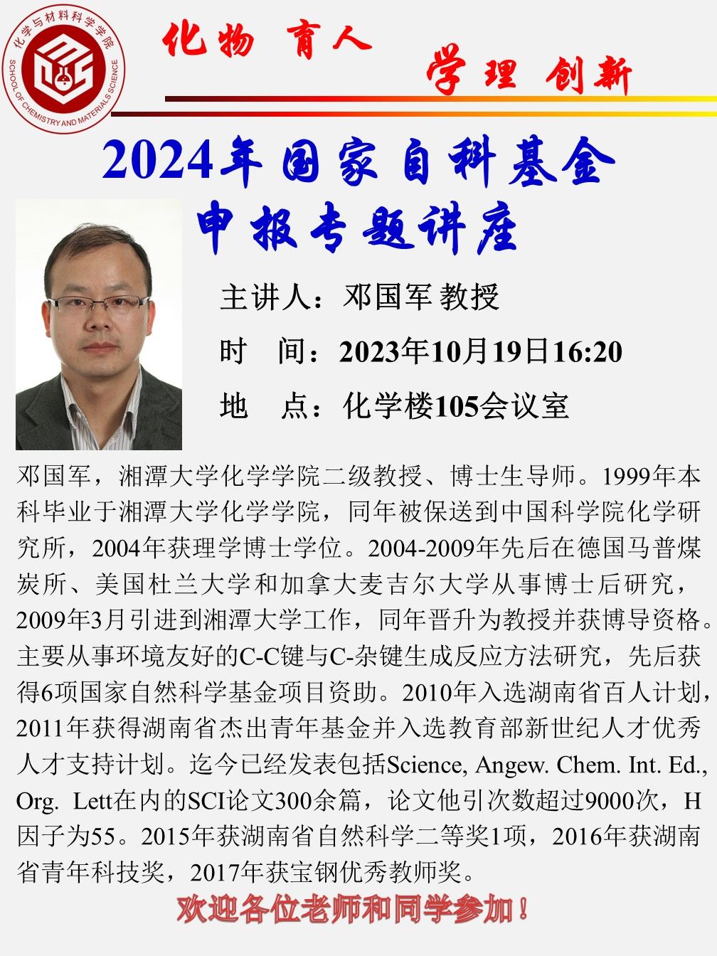 【基金申报】湘潭大学邓国军教授国家自科基金申报指导讲座