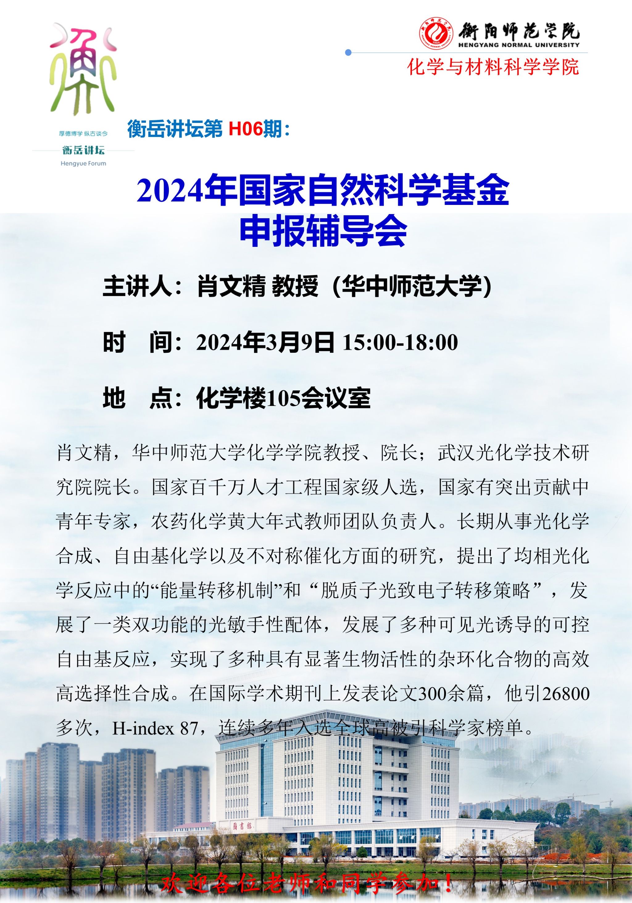 【基金申报】衡岳讲坛第H06期--肖文精教授国自科申报讲座