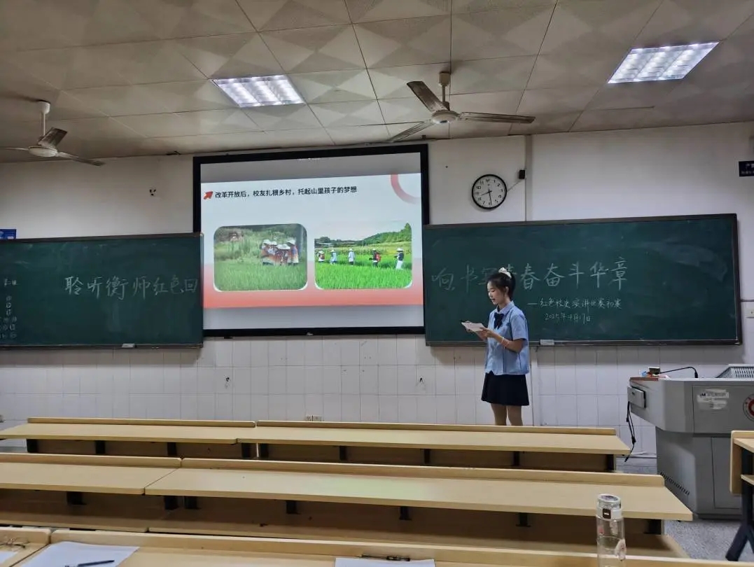 为深入挖掘学校红色历史资源,激励广大师生赓续红色血脉,弘扬革命精神,我院于2025年4月17日晚在西校区行知楼401、402举行了“聆听衡师红色回响,书写青春奋斗华章”红色校史演讲比赛初赛。