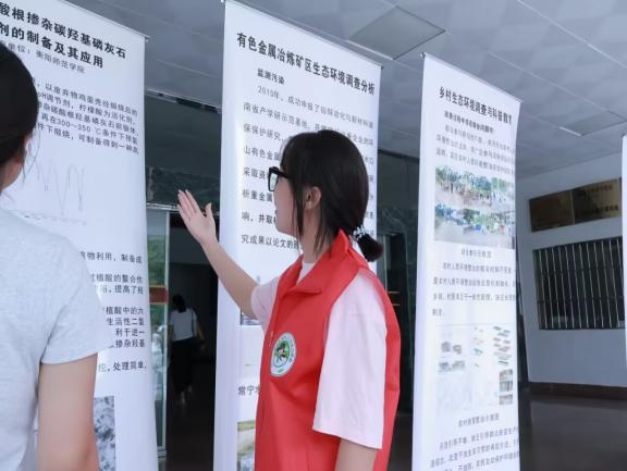 活动现场,系列展板有序排布,“绿色卫士”志愿者们化身生态科普使者,既详细解读湘江流域衡阳段的污染成因、治理技术及水生生物保护知识,让师生深入了解家乡母亲河生态现状;工业园搞“废水循环+固废回收”,废水净化浇农田、固废变建材,既少污染,又帮企业降成本;还结合本地乡村案例,于“乡村生态治理”板块分析群众参与、制度建设的关键作用,凸显“我是行动者”的重要意义。
