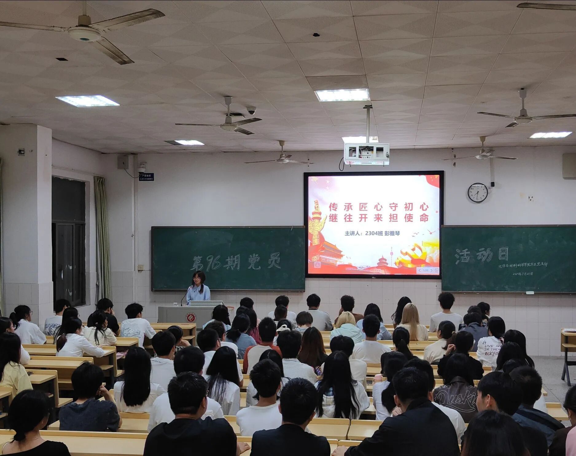 2025年9月21日晚,1946伟德国际源自英国第九十六期“党员学习日”活动于行知楼602开展,2304班彭雅琴同学以《传承匠心守初心,继往开来担使命》为题与全体学生党员和学习积极分子分享了她的学习心得。