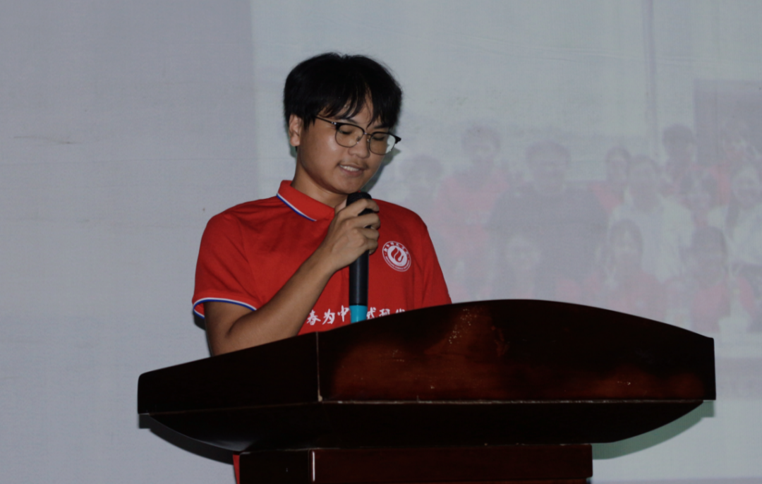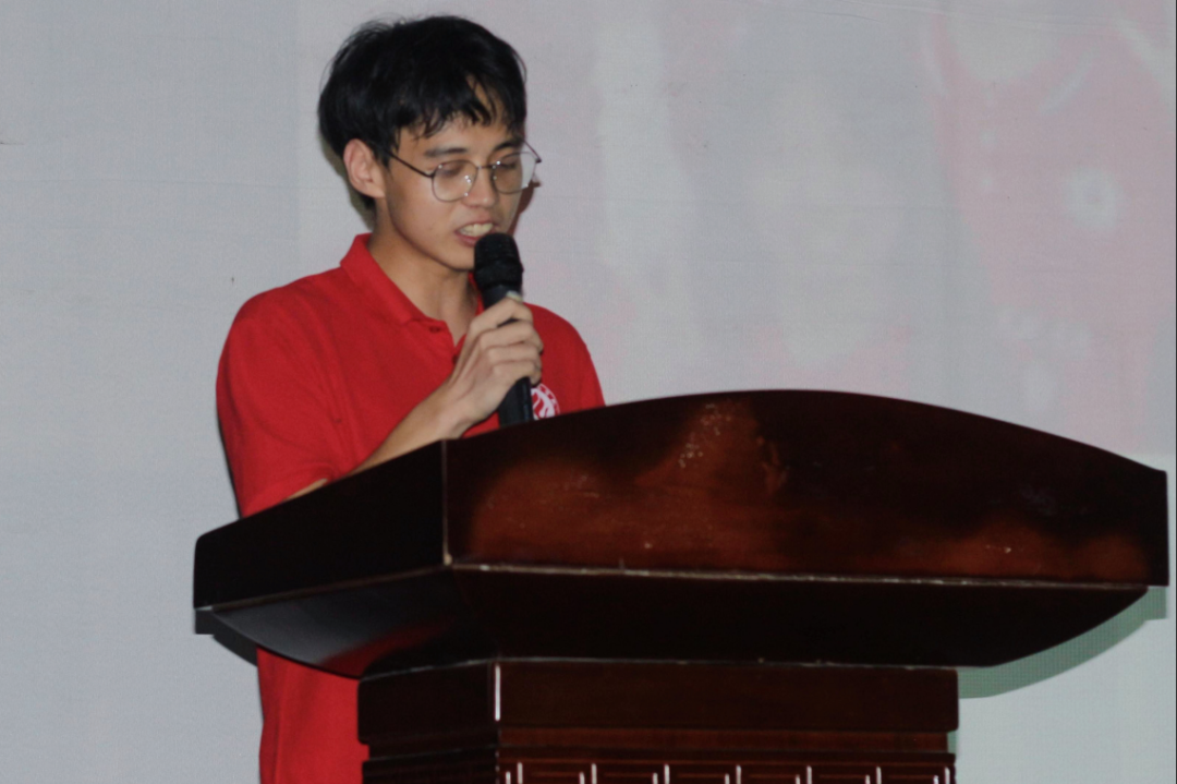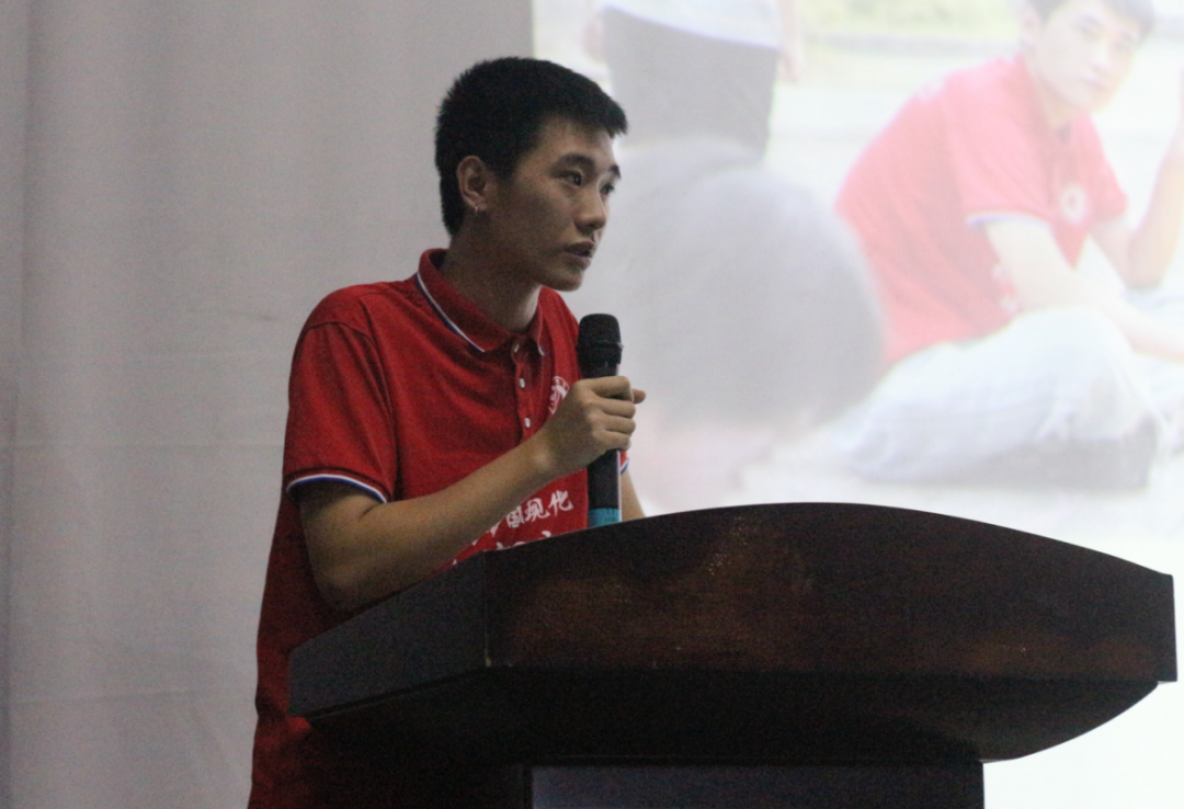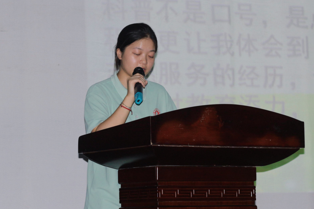 接着,“‘铜’心‘碳’索”科普队副队长唐文杰分享团队暑期“三下乡”科普实践经历,讲述了孩子们对科普知识的渴望以及团队成员在活动过程中付出。他认为三下乡不仅仅是一次社会实践,更是一次青春的洗礼,深刻地理解了“教育是一场温暖的陪伴”的含义。