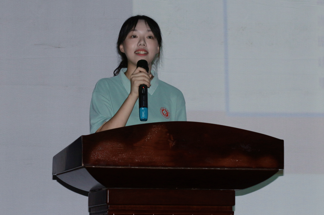 其次“‘铜’心‘碳’索”科普队队长李新媛向同学们讲述了团队在“三下乡”活动中的独特经历。从前期对课件的精心打磨,到实践过程中逐一克服的种种挑战,再到最终取得的显著成效,例如通过科普进小学活动向村民们普及化学安全知识,赢得了居民的高度认可与广泛好评。她激励同学们积极投身社会实践,将所学知识有效应用于实际,为社会发展贡献自己的力量。