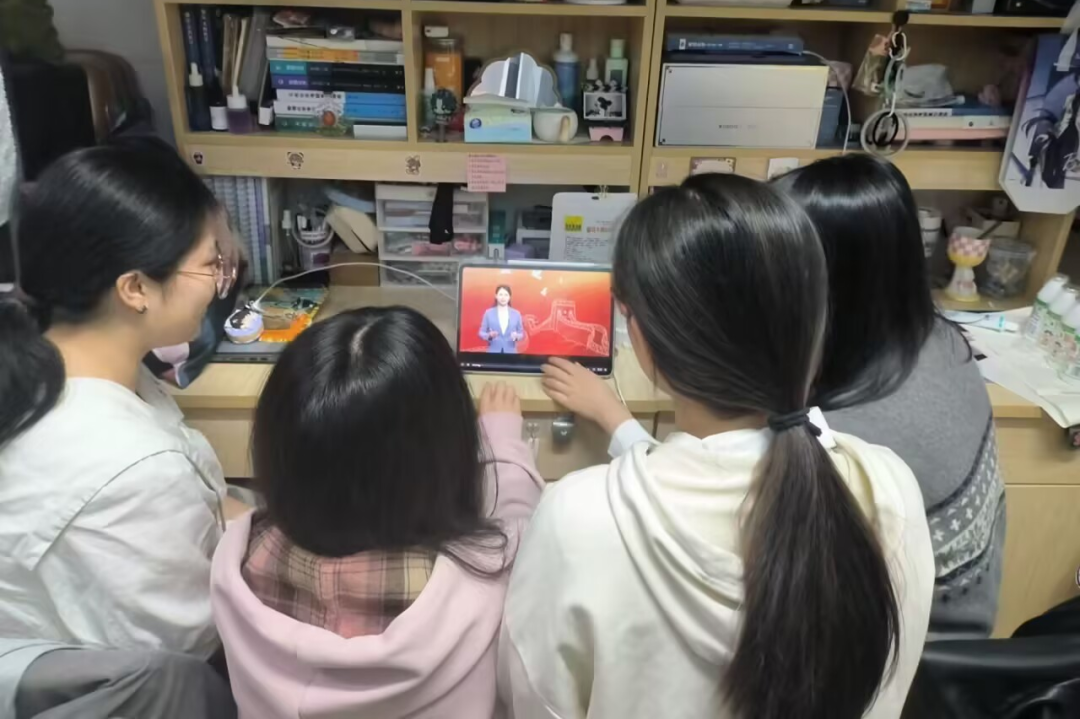 除集体观看外,部分班级采用自主观看模式,同学们自发在宿舍围坐一堂,共同观看主题思政课。小小的宿舍里,大家围坐在屏幕前,时而为历史画面所震撼,时而低声交流彼此的感受。大家你一言我一语,从抗战历史中的英雄事迹谈到当下的学习生活,从民族自豪感的激发聊到未来的责任担当,纷纷表示要以此次活动为契机,将伟大抗战精神内化于心、外化于行,以实际行动向这场伟大胜利致敬,为强国建设和复兴伟业不懈奋斗,努力成为能为世界和平与发展作出更大贡献的新时代中国青年。