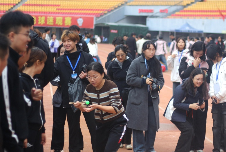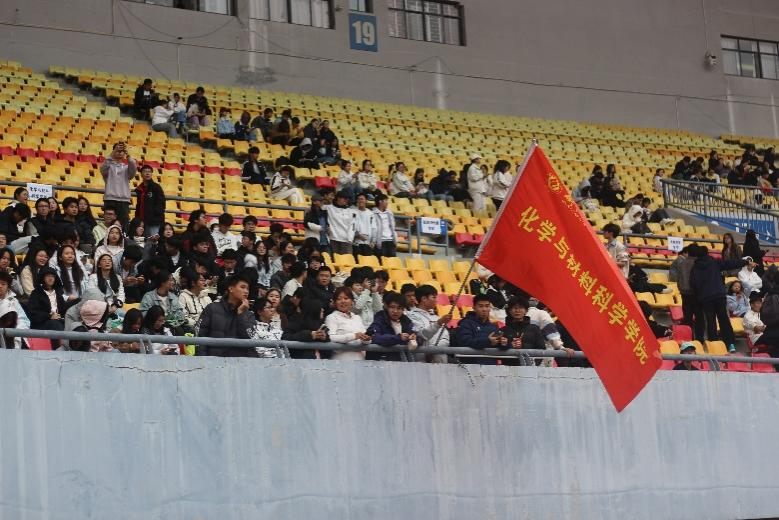当铿锵的步伐震响青春的鼓点,方块队意气风发,以整齐划一的队列,走出了化材学子严谨求实的风骨;啦啦队的呐喊如潮水般此起彼伏,用最饱满的热情与嘹亮的口号,为赛场注入了无限的活力与激情。而在他们身后,运动健儿们摩拳擦掌,眼神中闪烁着对速度与高度的渴望;后勤工作人员则默默穿梭,以细致的付出构筑起赛事最坚实的后盾。此刻,每一个人都是不可或缺的元素,共同化合出一幅名为“青春与荣耀”的动人画卷。