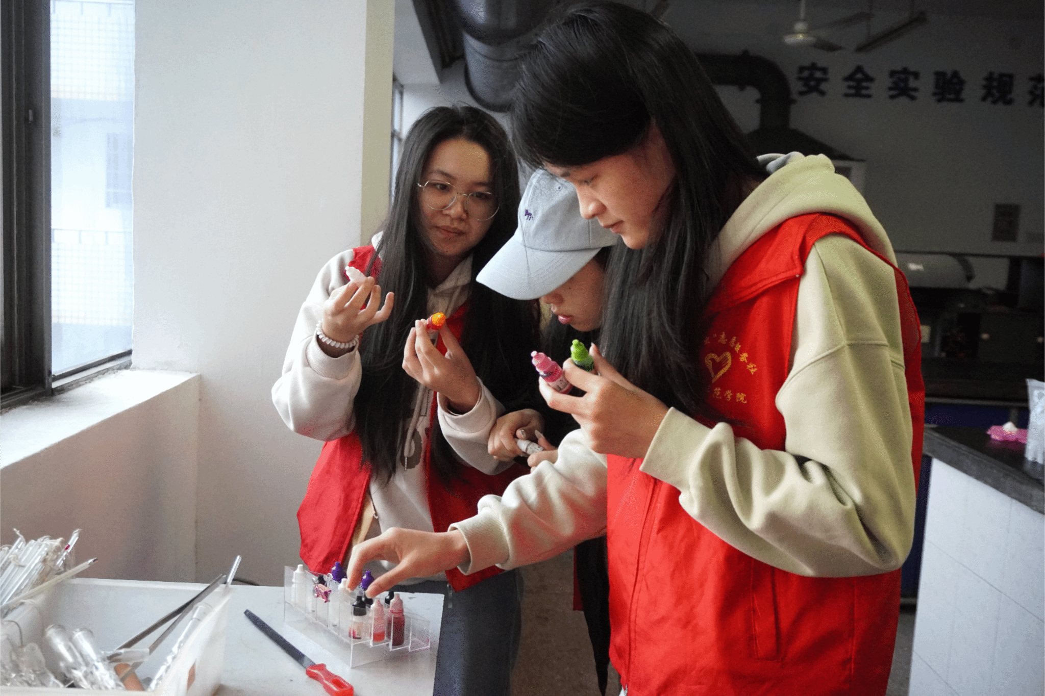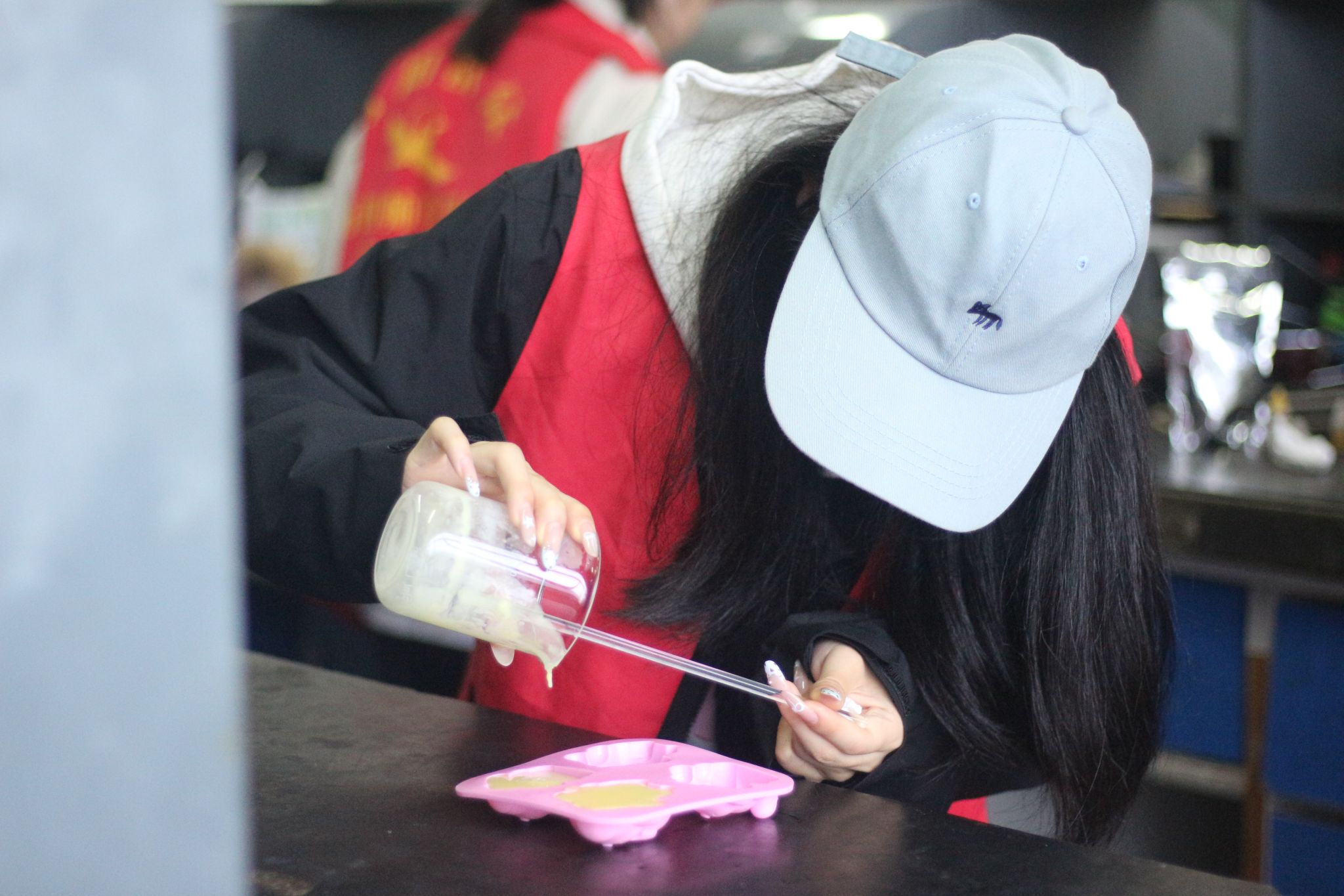 装样、加热、搅拌、调色、入模……每一个步骤都需要耐心与细心。从最初对材料的好奇,到小心翼翼地操作,再到彼此间默契地协作,实验室里洋溢着专注而愉快的氛围。当亲手调制的皂液缓缓注入各式各样的模具时,一份份独一无二的创意也随之定格。