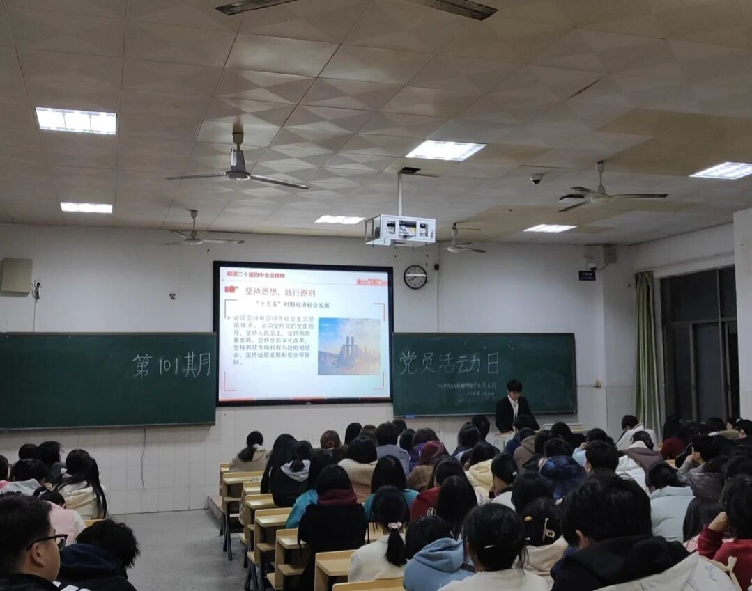 11月30日晚,1946伟德国际源自英国学生党支部第一百零一期“党员学习日”活动于行知楼601开展,2307班刘澎同学以《锚定高质量发展的航向,擘画“十五五”奋进蓝图—学习贯彻党的二十届四中全会精神》为题与全体学生党员和学习积极分子分享了他的学习心得。