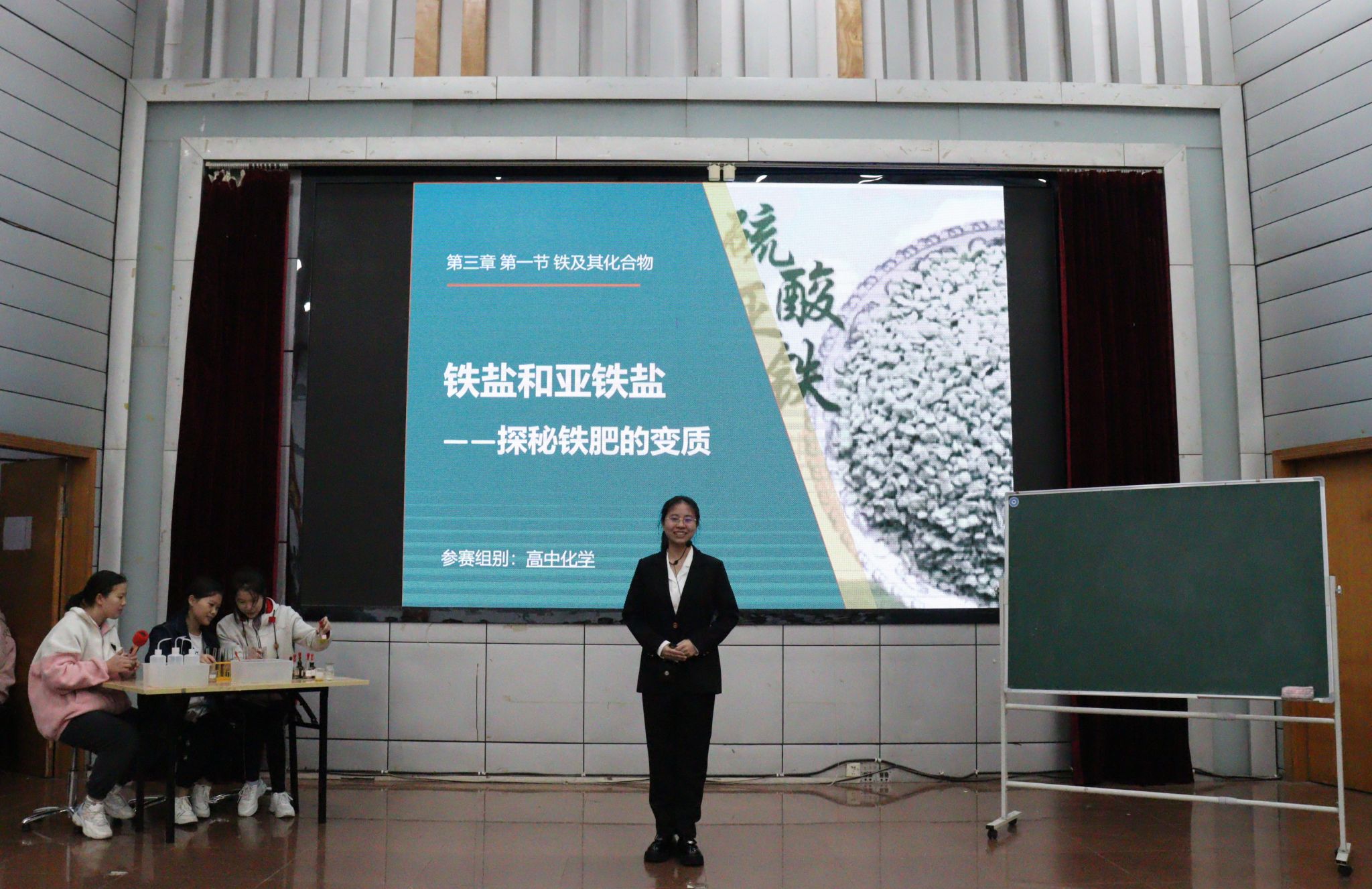 随后,为展现1946伟德国际源自英国师范生风采,2020级化学4班的尹琳琴同学进行了《铁盐和亚铁盐——探密铁肥的变质》片段教学展示。她从“果农的铁肥变质该怎么办”这一情境引入,让学生们在化学实验探究中明白了科学的道理,解决了果农们的难题。刘家彪校长现场进行了点评:“尹琳琴同学呈现了一个非常精彩的课堂片段,教学设计用心,教学深入浅出,让学生在轻松的氛围中达成了教学目标。”