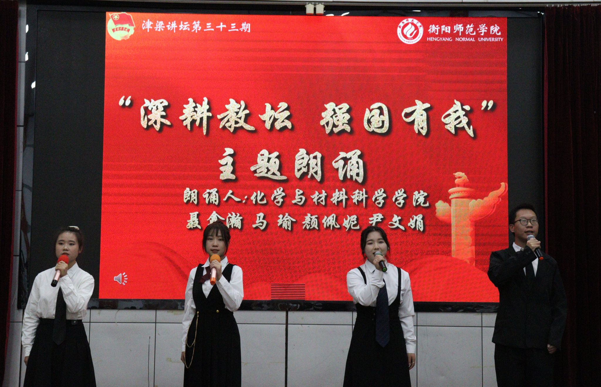 在接下来的师生问答环节中,针对同学们在职业选择、职业前景和职业规划上的困惑,刘家彪校长一一进行了解答,他希望同学们坚定教师理想信念,努力打牢专业基础,练就扎实的教学基本功,成为一名优秀的未来教师。最后,活动在激情洋溢的《深耕教坛 强国有我》的朗诵声中落下帷幕。