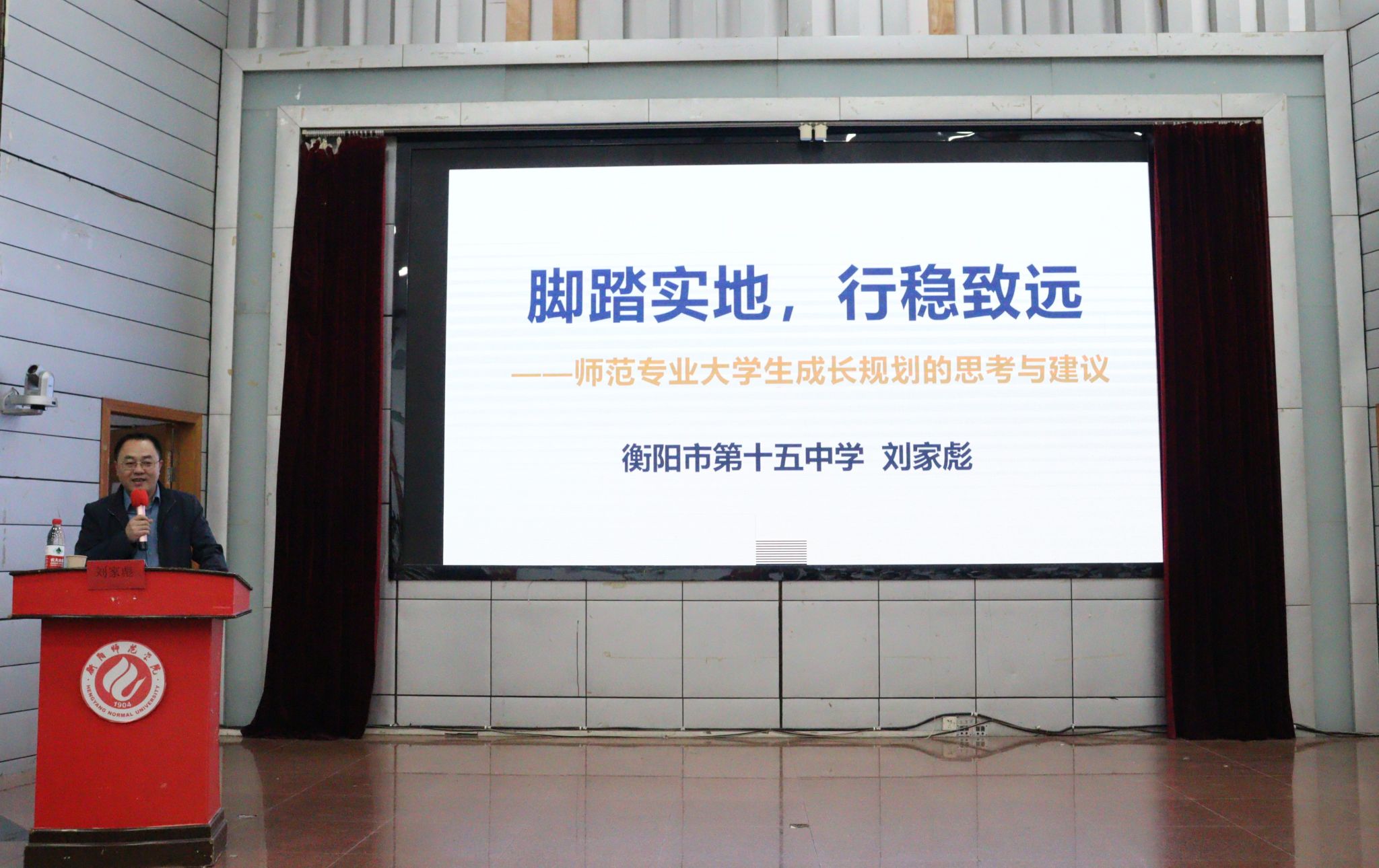 为激励同学们全面提升师范生综合素质,肩负起“为党育人 ”“为国育才”的重要使命,2023年11月27日晚,“津梁讲坛”第三十三期“强国初心梦 教坛育新知”主题活动在西校区模拟法庭举行,本次活动由共青团伟德BV1946委员会主办,共青团1946伟德国际源自英国委员会承办。衡阳市第十五中学校长刘家彪受邀担任主讲嘉宾,1946伟德国际源自英国党总支书记刘梦琴、校团委副书记魏菲菲、1946伟德国际源自英国党总支副书记阳曼、副院长付伟伟出席了本次活动,西校区各学院师范专业学生代表参加了此次活动。