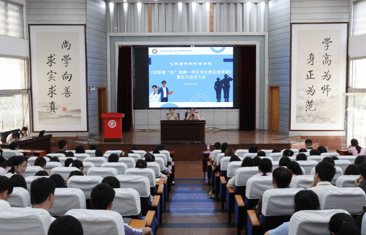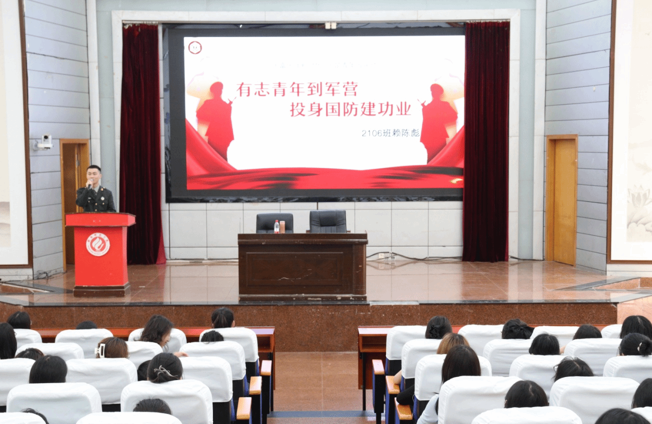大会分为两个环节:第一环节是观看求职避“坑”学生安全就业指导课视频;第二环节是征兵宣传大会。《求职避“坑”指南——学生安全就业指导课》视频以多个案例的形式,揭开了毕业生在实际求职中可能遇到的“套路”,为了避免毕业生落入骗子的圈套,视频邀请了就业指导专家就“如何安全就业”的问题为毕业生指点迷津。在征兵入伍宣讲中,来自21级应化1班退伍军人赖陈彪结合自身入伍两年的经历,向毕业生分享了他的军营生活以及入伍感受,宣传了国家征兵入伍相关政策,他号召毕业生们在守护万家灯火中实现人生价值。