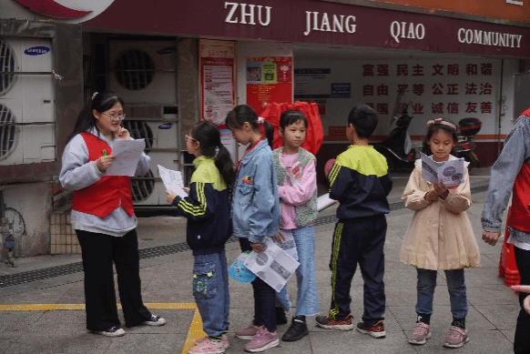 志愿者在不同街道对社区居民进行走访,宣传世界地球日和环保小知识,分发化学科普知识宣传册,并对路人进行随机访谈,让他们更多地了解地球环境相关情况和保护环境的重要性。