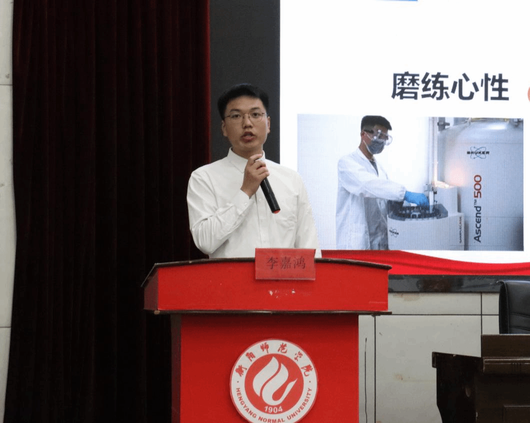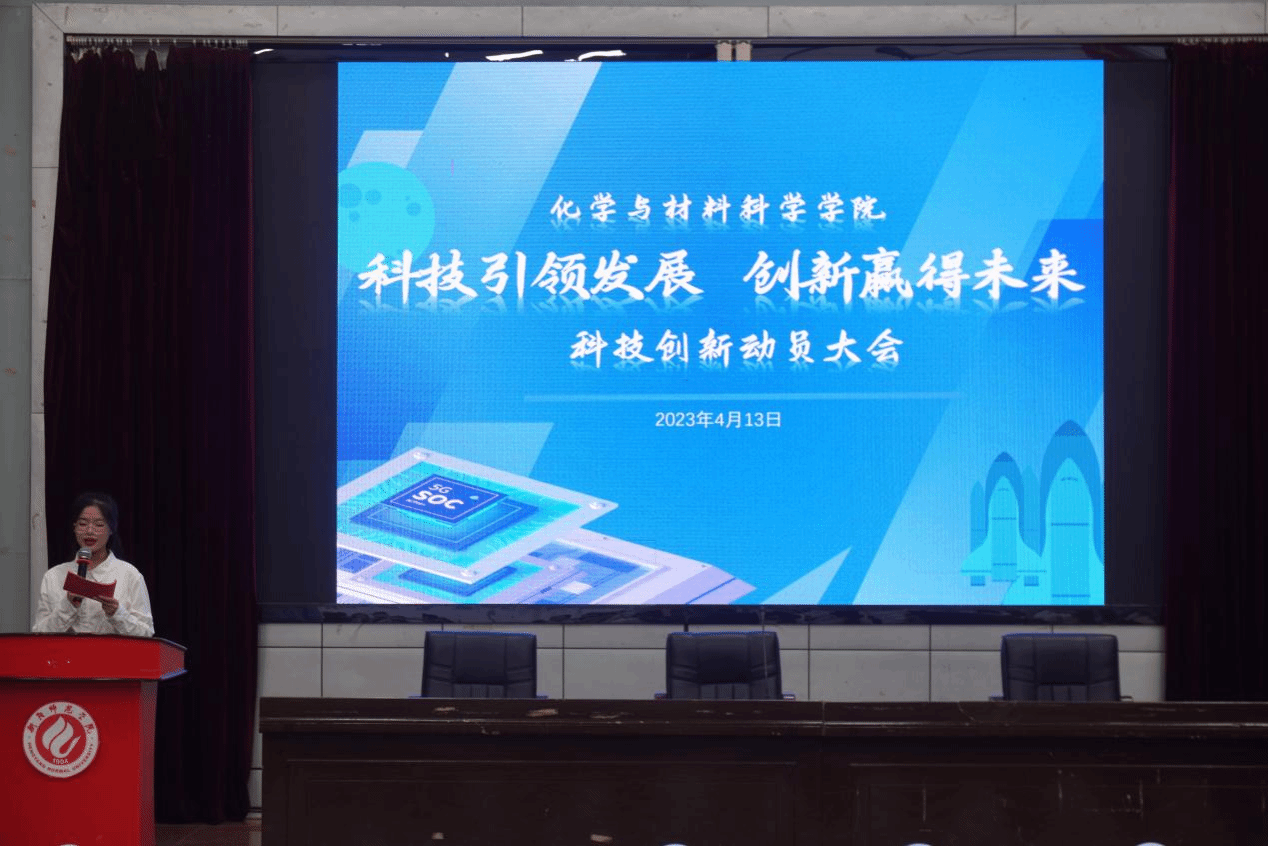 会议首先播放了一段短视频,向在场观众展现了化学反应中物质形态的精彩变化与艳丽颜色的相互转换,以及化学在我们生活中的各种神奇应用,将同学们带入了奇妙的化学世界。接下来由许志锋院长致开幕词,院长紧跟时事阐述了科教兴国战略中科技创新的重要性,为大家详细解释了“化物育人 学理创新”的院训。紧接着主持人向同学们介绍了我院雄厚的师资力量、优渥的科创条件、精密的实验仪器及丰富的科技创新成果。