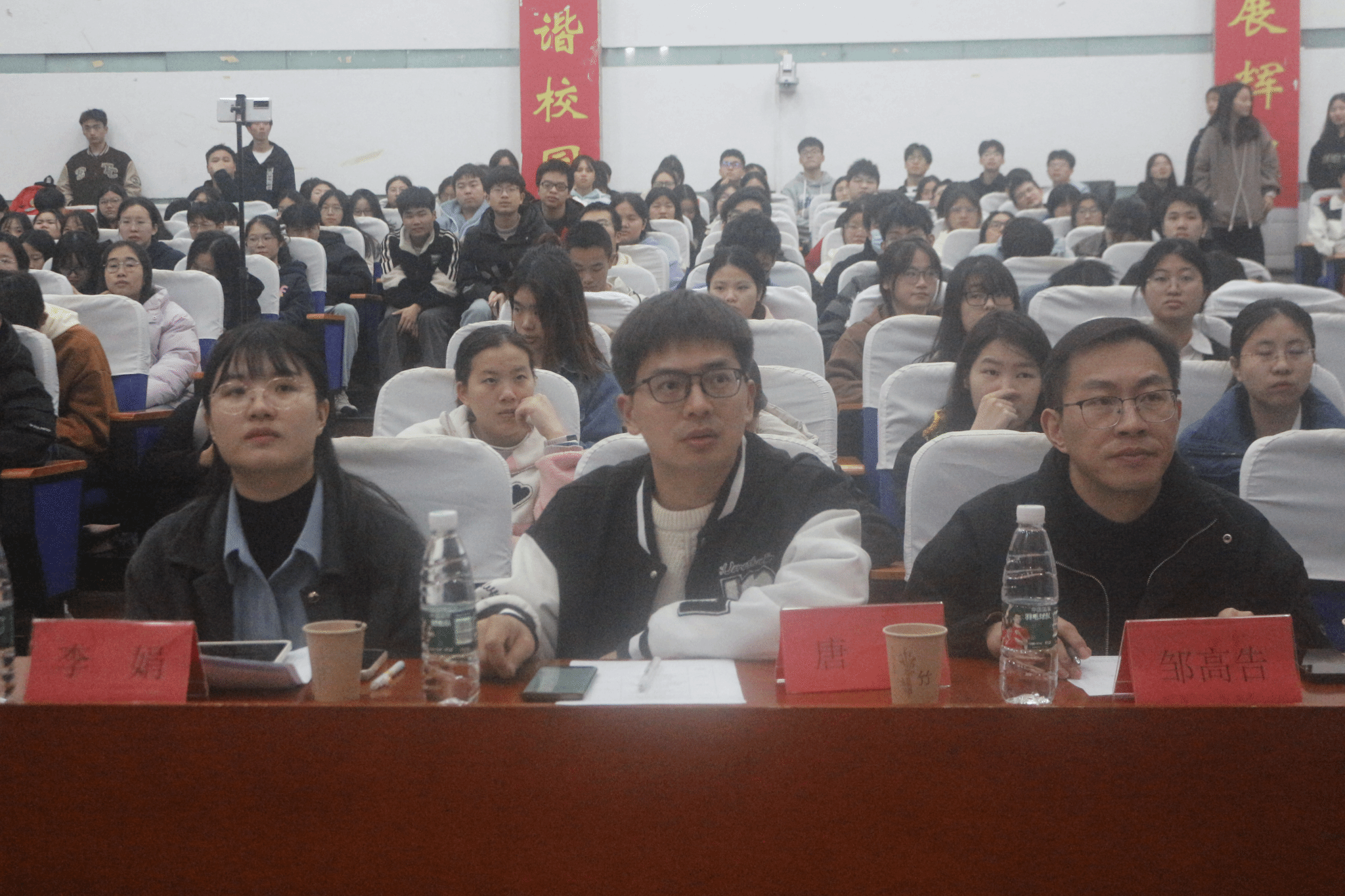 2023年12月7日晚,我院于伟德BV1946西校区模拟法庭举办师范生技能大赛动员大会,衡阳市成章实验中学化学教研组组长邹高告及唐清、李娟、陈畅畅三位老师特邀出席,学院党总支书记刘梦琴、院长许志锋、党总支副书记阳曼、副院长付伟伟、孙俊彬、学工办主任唐升、毛芳芳老师出席活动现场,我院全体2021级化学师范专业学生现场聆听。