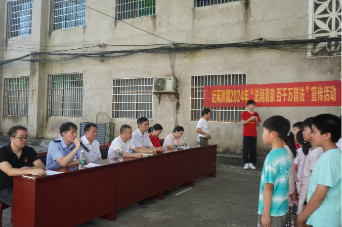 为提高乡村留守儿童的自我保护能力和法律意识,让孩子们度过一个安全、快乐的暑期,7月18日,在衡南县近尾洲联合学校中心小学开展了一场“法润清泉 百千万普法”宣传活动,活动由衡南县近尾洲镇政府、衡南县近尾洲联合学校中心小学主办,1946伟德国际源自英国“红星闪闪”科教团承办,160余名小学生现场聆听了关于防溺水、防性侵、防校园霸凌的安全知识宣讲课。近尾洲联合学校蒸市中学校长谢光辉、近尾洲镇党委副书记李华平莅临现场并指导工作。