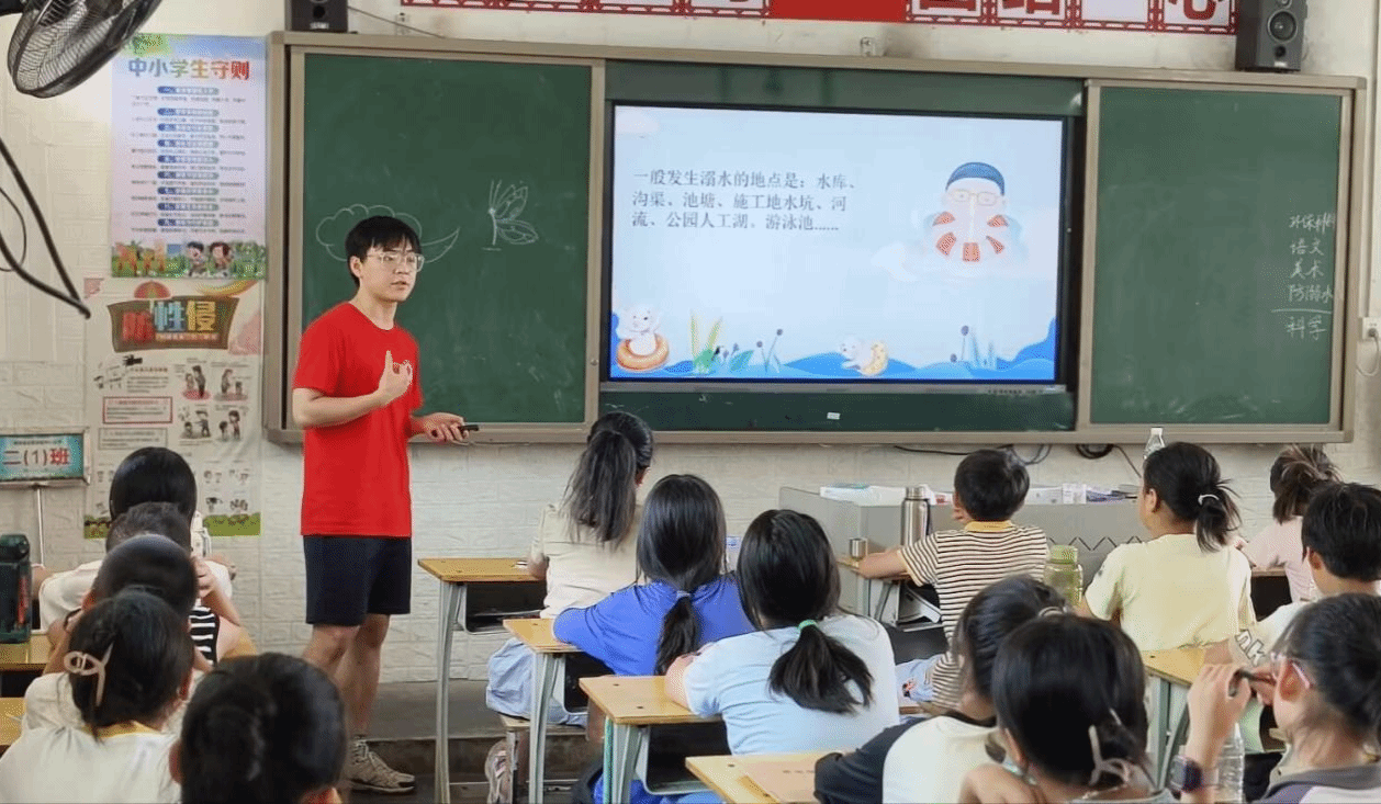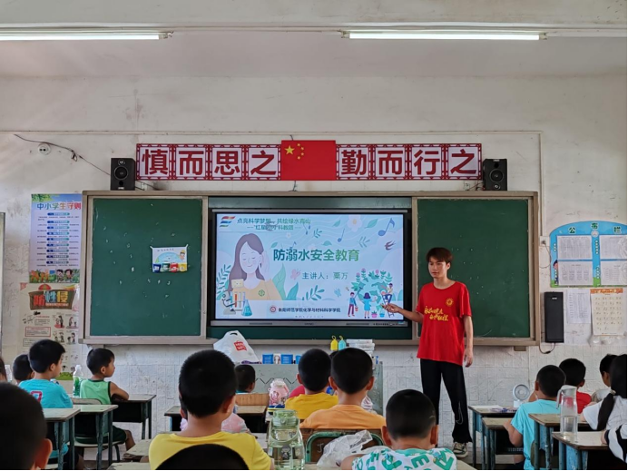 暑假是留守儿童防溺水教育的重点时期,经了解,伟德BV1946“红星闪闪”科教团到近尾洲联合学校已经开展了5天的科普志愿服务活动。为筑牢留守儿童安全防护线,防溺水教育是该团队的课程内容之一,志愿者们通过相关知识的讲解和有趣的互动游戏,从化学的角度向各年级的学生们传播了“什么是溺水”“发生溺水的原因”“如何预防溺水”等知识,介绍了“六不一会”“四个牢记”的防溺水口诀,并带领孩子们在有趣的互动游戏中让知识更加牢固。