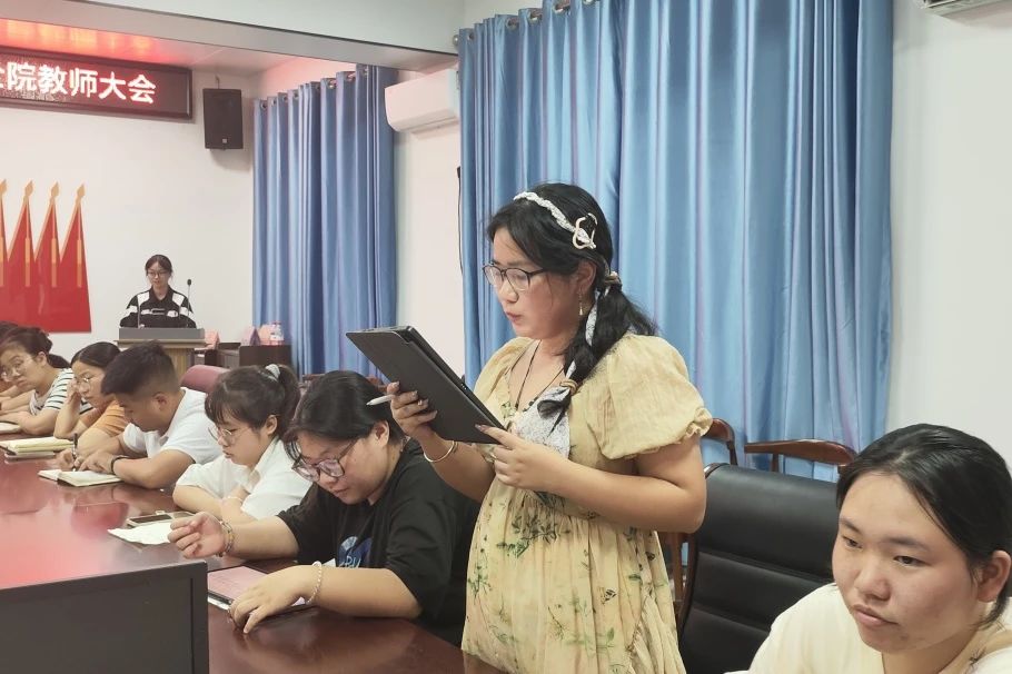 会议开始,各部门部长从开学工作、新生军训、日常管理以及学院特色活动等方面讲述了本学期的主要工作安排。