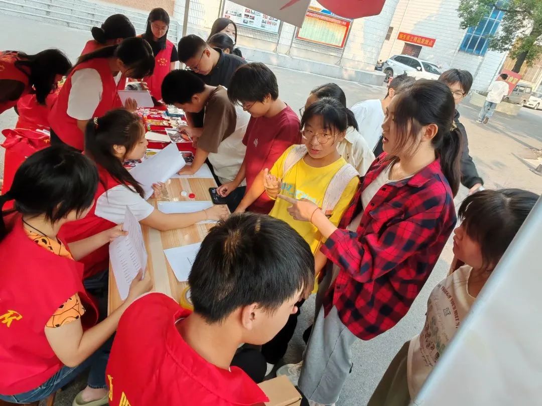 志愿者们细致地向同学们讲解游戏规则,并进行示范。在元素探索游戏中,他们耐心地引导同学们列举含有特定化学元素的物质,并提供适当的关联词提示,使同学们注意到生活中的化学现象。在正中靶心游戏中,同学们既有击中靶心的欢呼,也有擦边而过的遗憾。在emoji猜成语游戏中,同学们面对抽中的图案,或陷入沉思,或豁然开朗。到了记忆达人环节,志愿者们对社团开展的志愿服务活动进行了详细的讲解,参与者们认真聆听,仔细观察风采照上的细节。无论成功与否,他们都因观赏到那一抹志愿红而感到愉悦,并对社团产生了初步了解和浓厚兴趣,迫不及待地希望加入我们社团参与志愿服务活动。在拍照打卡环节,同学们跃跃欲试,在志愿者的鼓励下,积极参与,与易拉宝或海报的合影。随着活动的推进,各位志愿者对萤火虫志愿服务社的了解也日益加深。