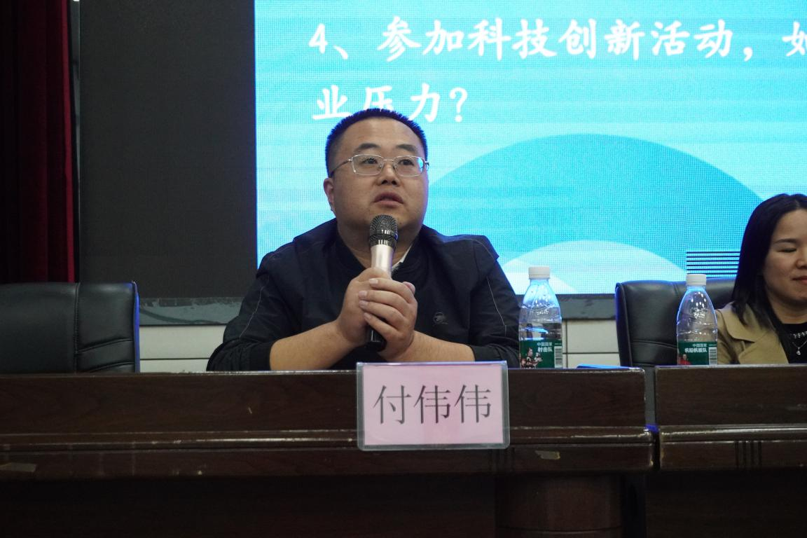 在教师答疑环节中,谭雄文、陈文等数位老师分别就“如何在高强度学业压力下,合理安排时间参与科技创新活动?”以及“大学一年级新生缺乏实验经验,是否可以加入教师实验室开展科研工作?”等问题进行了详尽地解答。老师们表示,学生应该要不断培养科技创新能力,因为这种能力是成为高素质人才的一个核心和灵魂。