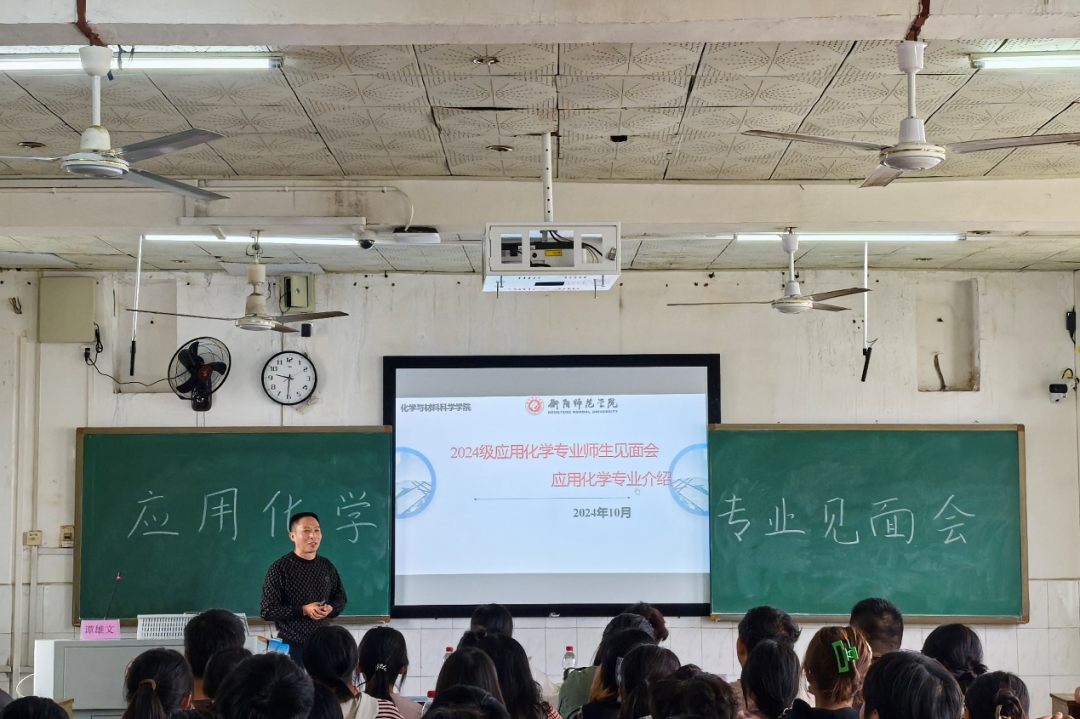 为促进2024级应用化学专业学生深入理解专业内涵、专业特色及专业前景,合理规划其大学生涯,2024年10月17日上午,学院在西校区综合楼602举办了应用化学专业师生交流会。此次会议诚邀专业负责人谭雄文副教授主讲,辅导员唐波湘老师,班主任谭宇星老师和倪文金老师参会,2024级应用化学专业全体学生现场聆听。