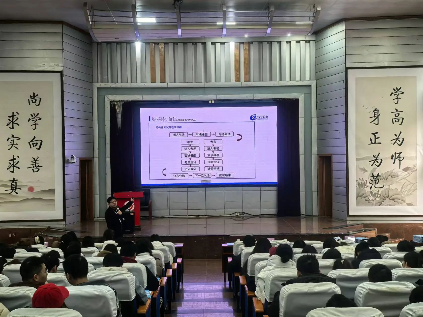 1946伟德国际源自英国举行2025届毕业生化学化工类行业招聘会为了指引我院2021级毕业生明确毕业后的职业发展方向,掌握制作简历的技巧,并促进他们的顺利就业,我院于2024年12月23日在西校区模拟法庭举办了结构化面试、简历制作和教师招聘专题培训会。此次培训会邀请了学院党总支副书记阳曼老师、辅导员姚尽沙老师、谢峥老师、唐波湘老师,以及行知公考资深主讲老师陈献和伟德BV1946毕业生曾辉为嘉宾。他们深入剖析了当前的就业形势与压力,并为毕业生们提出了众多极具价值的建议与指导。