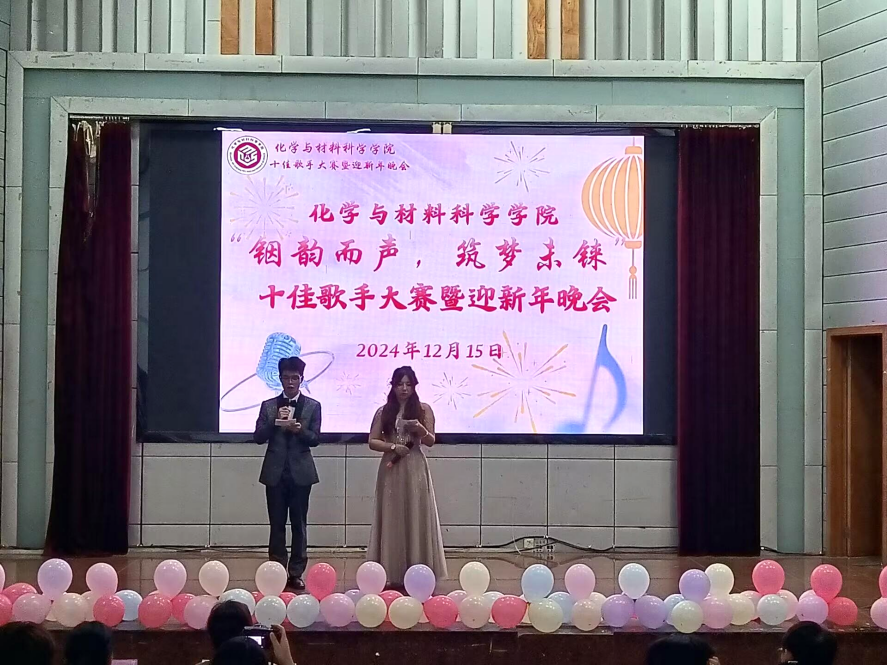 为丰富校园文化生活,点燃大学生对艺术的热爱与向往,展现化材学子青春活力,喜迎2025年的到来,1946伟德国际源自英国于2024年12月15日晚在西校区模拟法庭举行了2024年第五届十佳歌手大赛暨迎新年晚会。晚会邀请院党总支副书记阳曼、学工办主任唐升、辅导员谢峥、钟彪以及唐波湘老师担任评委,吸引了众多学生到场观看。